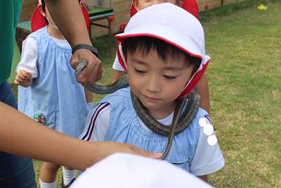 ヘビを首に巻いてみたお友だちもいましたよ
