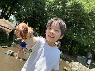 「見て~!ザリガニ見つけたよ!