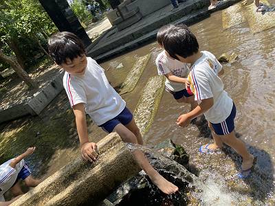 サンダルに履き替えて水遊び
