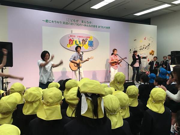 にも来て頂き、みんなで笑顔のおくりものを歌って