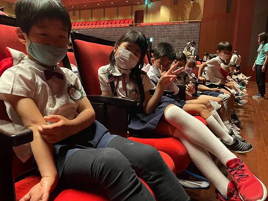 園バスを降りて、いよいよロームシアターへ!