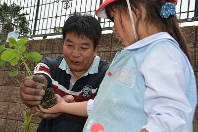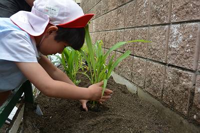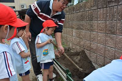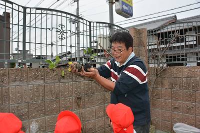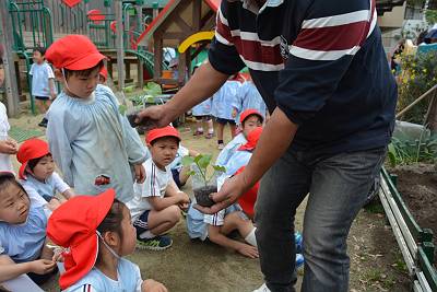 今日はいいお天気の中、晃三先生と一緒に苗植えをしました!
