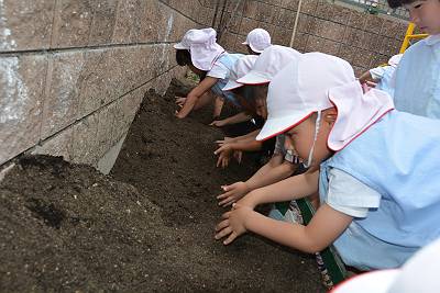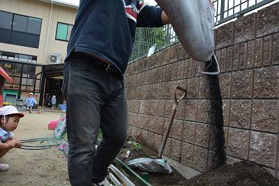 まずは土と肥料を混ぜるところからスタート!