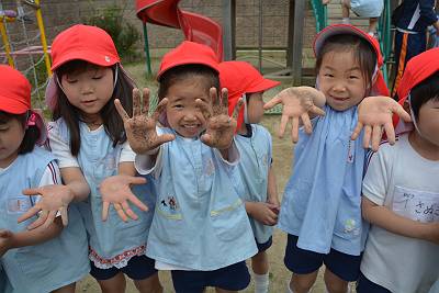 手やスコップを使って混ぜ合わせていくよ☆