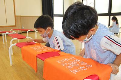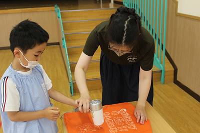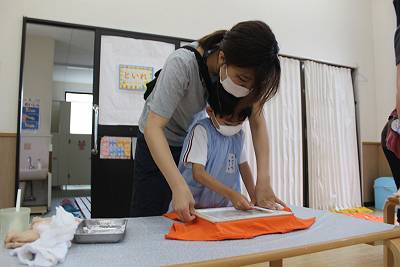 先日、お泊り保育のTシャツ作りをしました