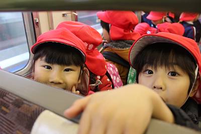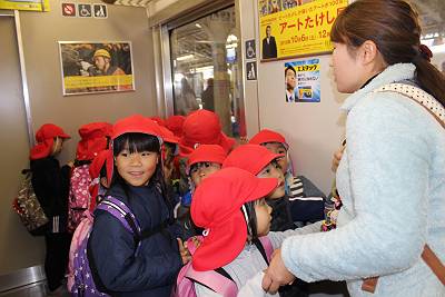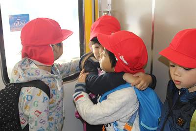 電車は、お友達と支え合って、こけないように気を付けてね!!