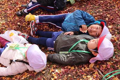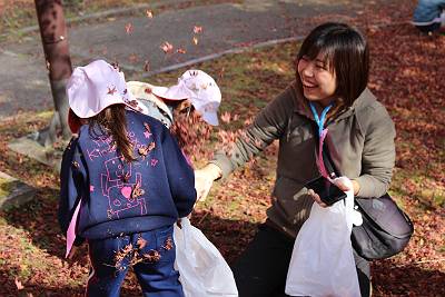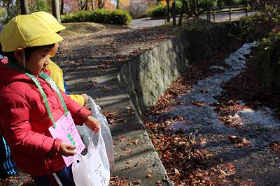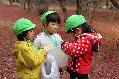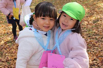 今日はとっても良いお天気の中、みんなで落ち葉拾いに行って来ました!