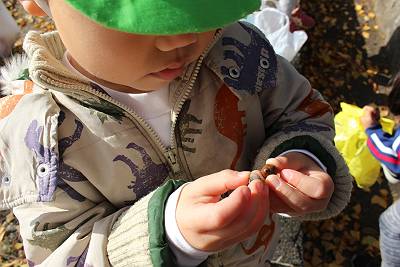 ぼうしをかぶってるどんぐりがあったよ
