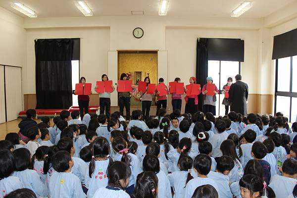 お話のあとは、何やら赤いカードがたくさん出てきましたよ。