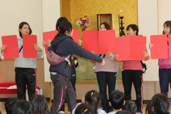 「落っこちたライオン」の紙芝居を読みながらわかりやすく教えてくれました。