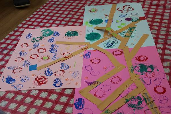 道を貼って、野菜スタンプを押して、街を作るよ♬