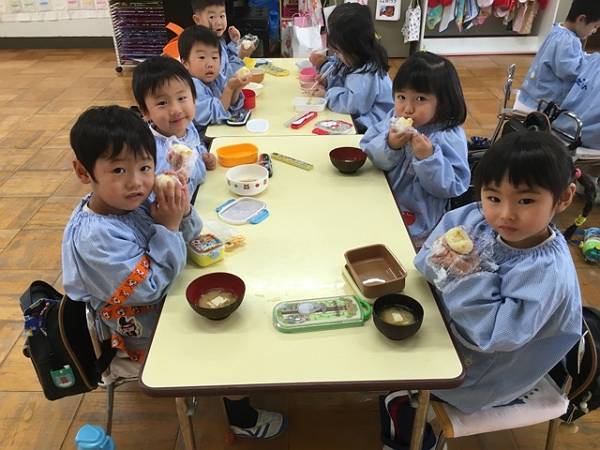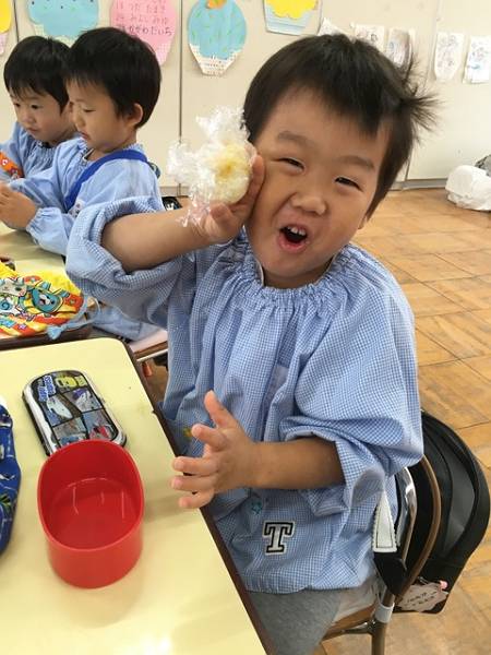 こちらは緑組さん、緑組さんと黄組さんはお芋ほりをしたので焼き芋もいただきました。