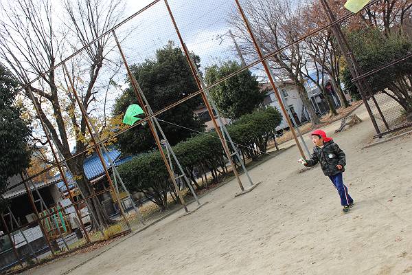 幼稚園生活では最後の凧あげ…