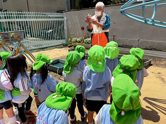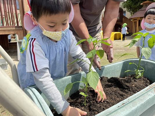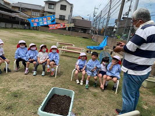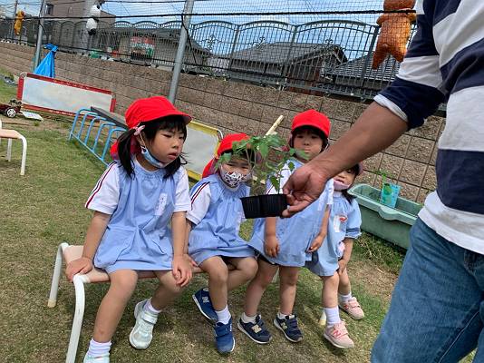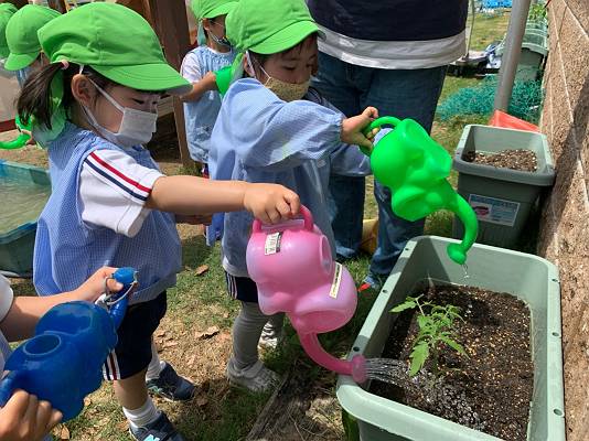 桜組さんは、ヒマワリの種とトマトの苗を植えていくよ~~