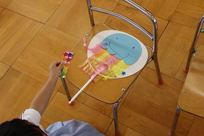 今日はサマースクール2日目!各学年に分かれて夏の製作「うちわ」を作りました