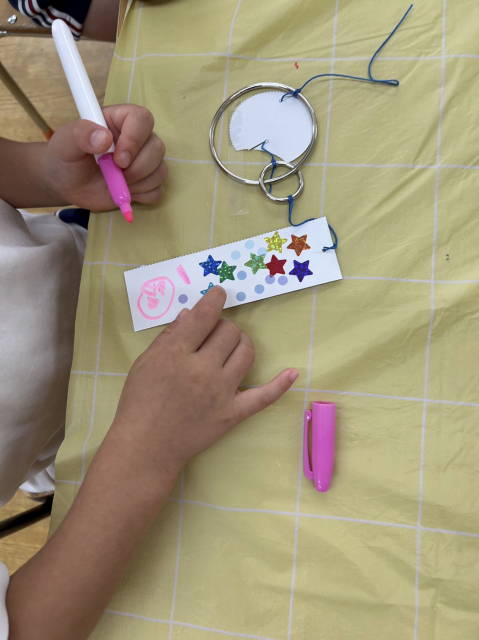 桜組さんはシール貼り、黄組さんはシール貼りとお絵描きをしました。