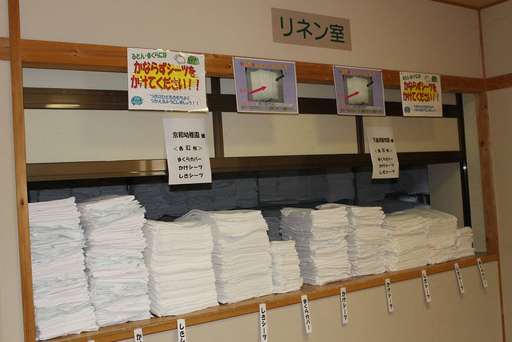 ここにあるシーツをおふとんに敷きます。みんなできるかな??