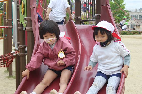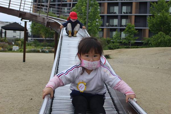 「一緒に滑り台滑ろ~!」