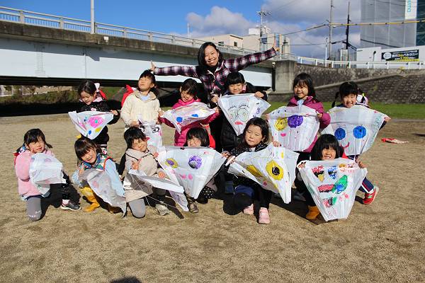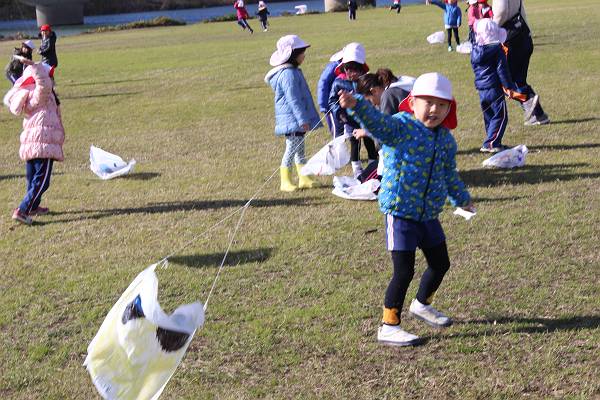 どうやったら高くまで飛ぶのか、みんな工夫しながらたこあげに挑戦する様子が印象的でした
