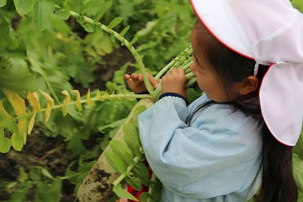 葉っぱまでいれたら自分の体よりも大きい大根