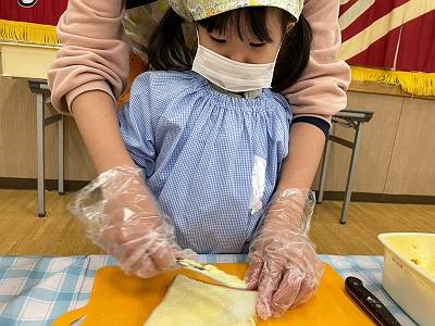 手を洗って三角巾をつけて準備万端!