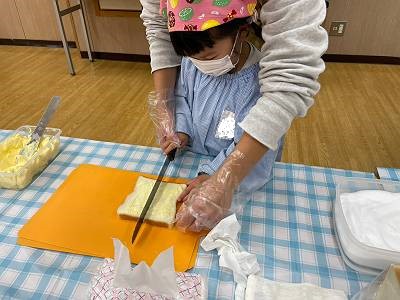 みんなでパン屋さんに変身してラスクを作るからです
