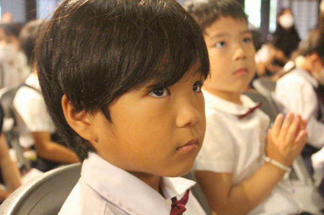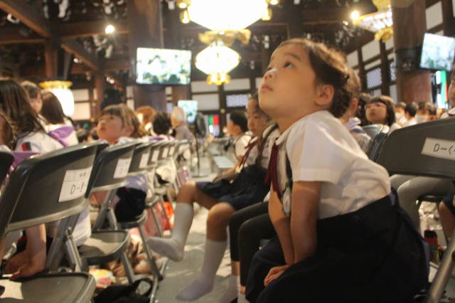 西本願寺の御影堂で、他の幼稚園のお友達と一緒におつとめをしたり、お話を聞きました。