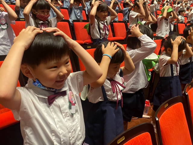最後にみんなで仲直りをしたら講堂いっぱいにシャボン玉が広がって素敵な空間に