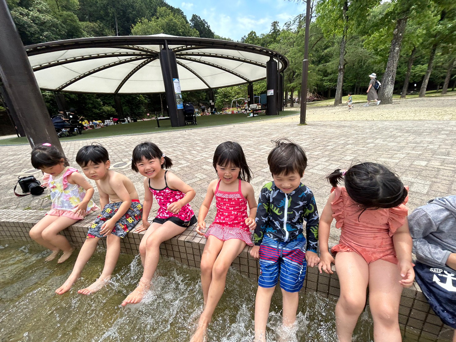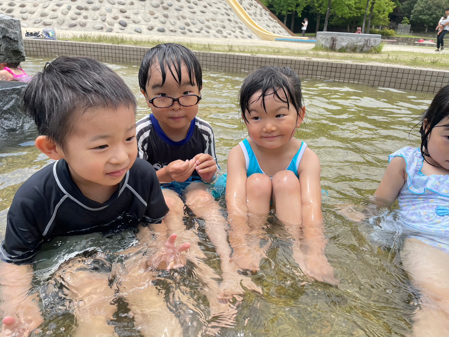 待ちに待った今年初めての水遊びでは、お着換えの時から「私の水着、かわいい?」とお友達と見せ合いっこをして楽しんでいました!