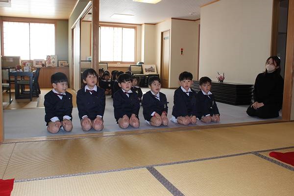 お部屋に入る時は正座をしてまっすぐ園長先生の方を見て、、
