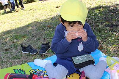 お外で食べるご飯はとびっきり美味しいね
