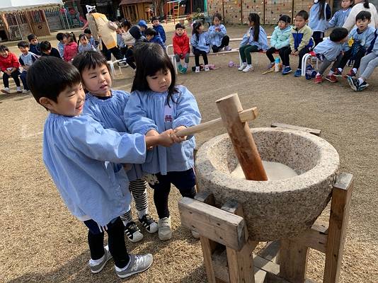 みんなの力を合わせておいしいおもちをつくるぞ![]()