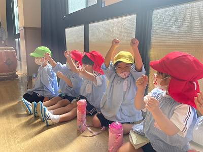 今日は桜組と黄組で和太鼓遊びをしました♫