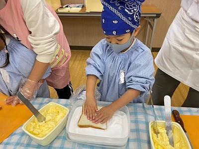 バターをたっぷりパンにぬりぬり