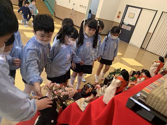 講堂には素敵なひな人形も飾っています♪