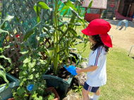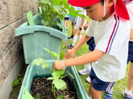 幼稚園では夏野菜を育てています