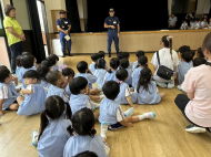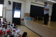 突然の非常ベルにも冷静に!担任の先生のお話を聞いていた子どもたち。