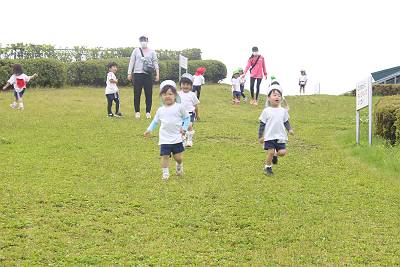 元気いっぱい丘を登ったりおりたり、子どもたちのパワーは尽きません!