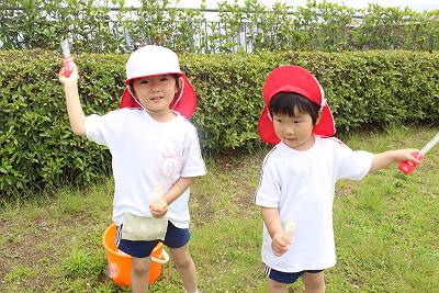 アメンボやザリガニを見つけたお友だちもいましたよ![]()