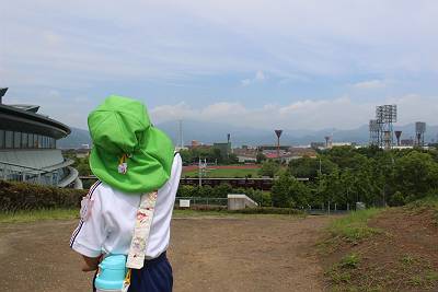 遠足リュックを持って、サンダルをはいて準備万端で出発!!![]()