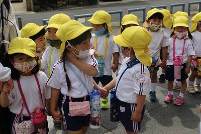 お友達とおててを繋ぎながらしっかり歩く桜組さん!