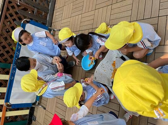 幼稚園に帰ってからはお楽しみのお弁当タイム♬