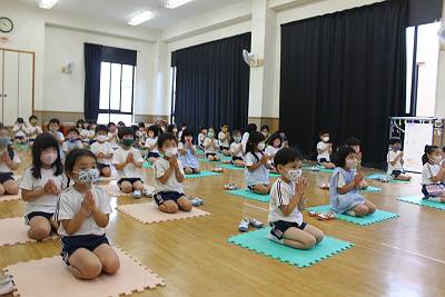 みんなでのの様に手を合わせて「ねね」のお歌を歌います。