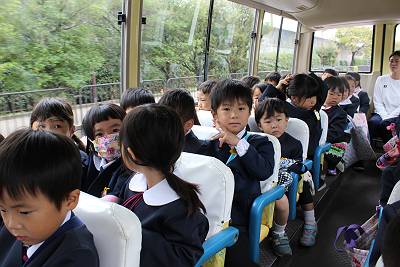 他の幼稚園のお友達に格好よく挨拶するぞ!と意気込んでバスを出発しました