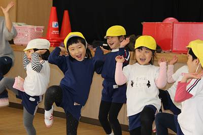 体育遊びの成果を見てもらえた子ども達。
