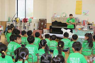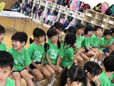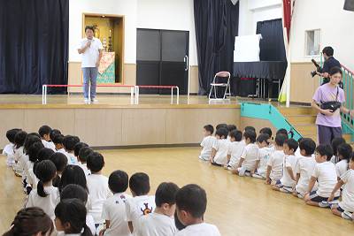 幼稚園に到着して園長先生のおはなし