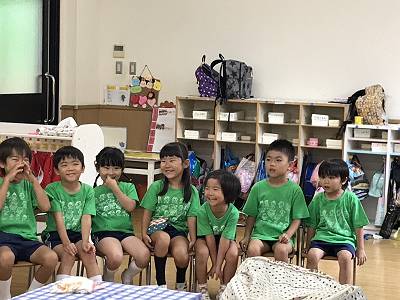 自分達で作ったクラスのTシャツを着て幼稚園に集合