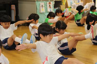お話の後は、準備体操をしっかりして…