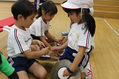 桜組さん、初めての和太鼓に大喜びです!