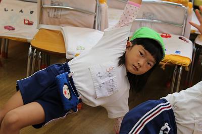 運動会でやったポニョの曲に合わせてお手本を見せてあげました。